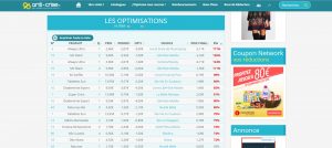 - Allez en bas de la page, après le catalogue, vous avez le tableau des optimisations