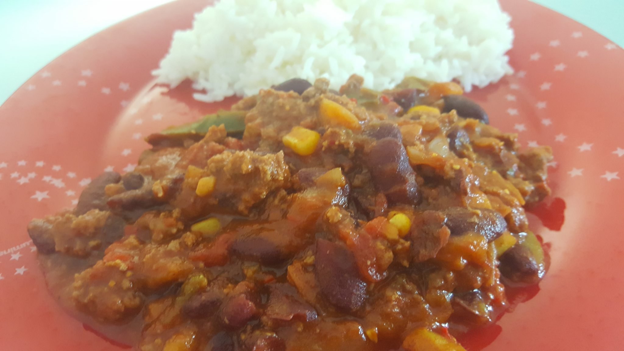 3 personnes3 steaks hachés surgelés 1 grosse poignée de poivrons surgelés en lamelles 1 poignée d'oignon surgelés Une boite moyenne d'haricots rouges Une boîte moyenne de tomate entière pelées 2 c.a.s. de maïs en boîte 1 c.a.s. d'ail surgelé Un peu d'huile 1 grosse c.a.s. d'épices à chili ou épices espagnoles Sel, poivreMettre le cookeo… Voir la recette
