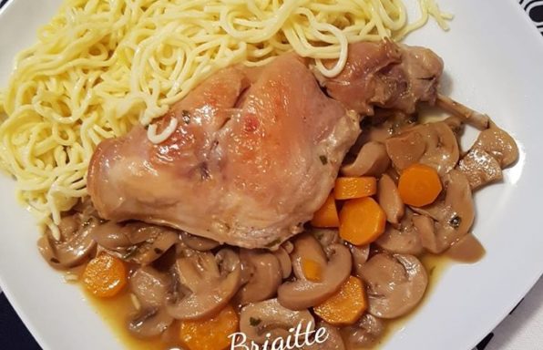 4 personnes 4 cuisses de lapin 1 oignon émincé 60ml de fond de veau 400gr de carottes en rondelles 70cl de vin blanc Sel, poivre Un filet d’huile d’olive 2 grosses c.a.s. de moutarde 2 grosses c.a.s. de crème fraîche épaisse Mettre le cookeo en mode dorer Faire revenir les cuisses de lapin dans l’huile […]