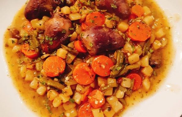 2 personnes 250 gr de coeurs de Canard 2 boîtes 290 gr de Poêlée Parisienne 7 cl d’eau 1 c.a.c de fond de volaille 1 c.a.s de graisse de canard ail & persil Sel & poivre Mettre le cookeo en mode dorer Dans la graisse de canard faire revenir les coeurs pendant 3 mn Arrêtez […]