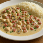 Découvrez notre délicieuse recette de poulet à la crème avec lardons et champignons au Cookeo. Un plat familial savoureux prêt en 15 minutes, parfait avec du riz ou des pâtes !