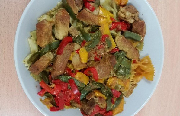 Émincé de porc aux poivrons et pâtes à l'autocuiseur Moulinex