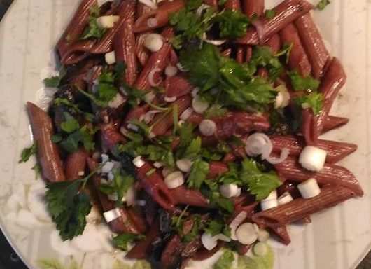 ***PENNE AU VIN ROUGE ET CEBETTES***