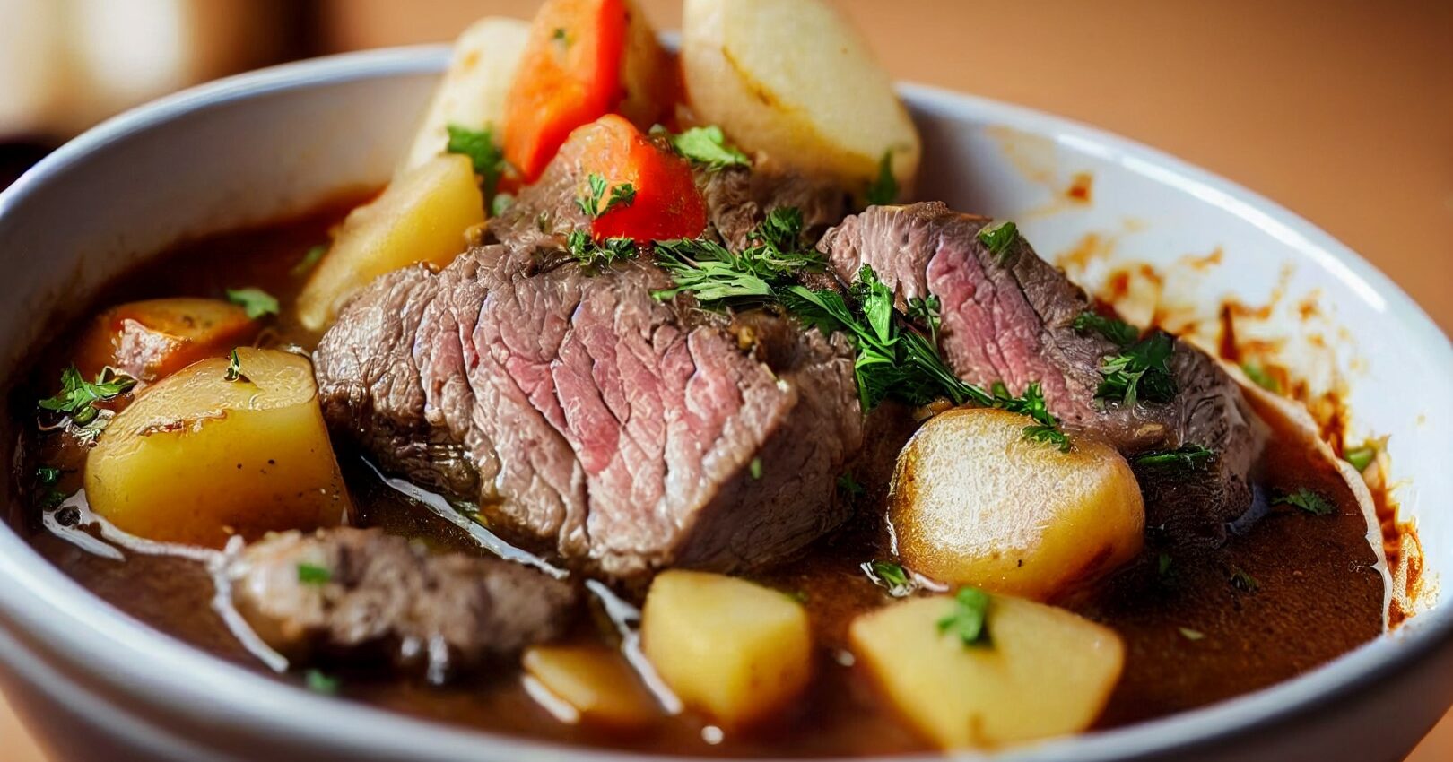 Ragoût de Poitrine de Boeuf à la Cookeo - Un plat de viande tendre et savoureux cuit lentement avec des oignons et des carottes. Parfait pour un dîner familial ou une occasion spéciale.