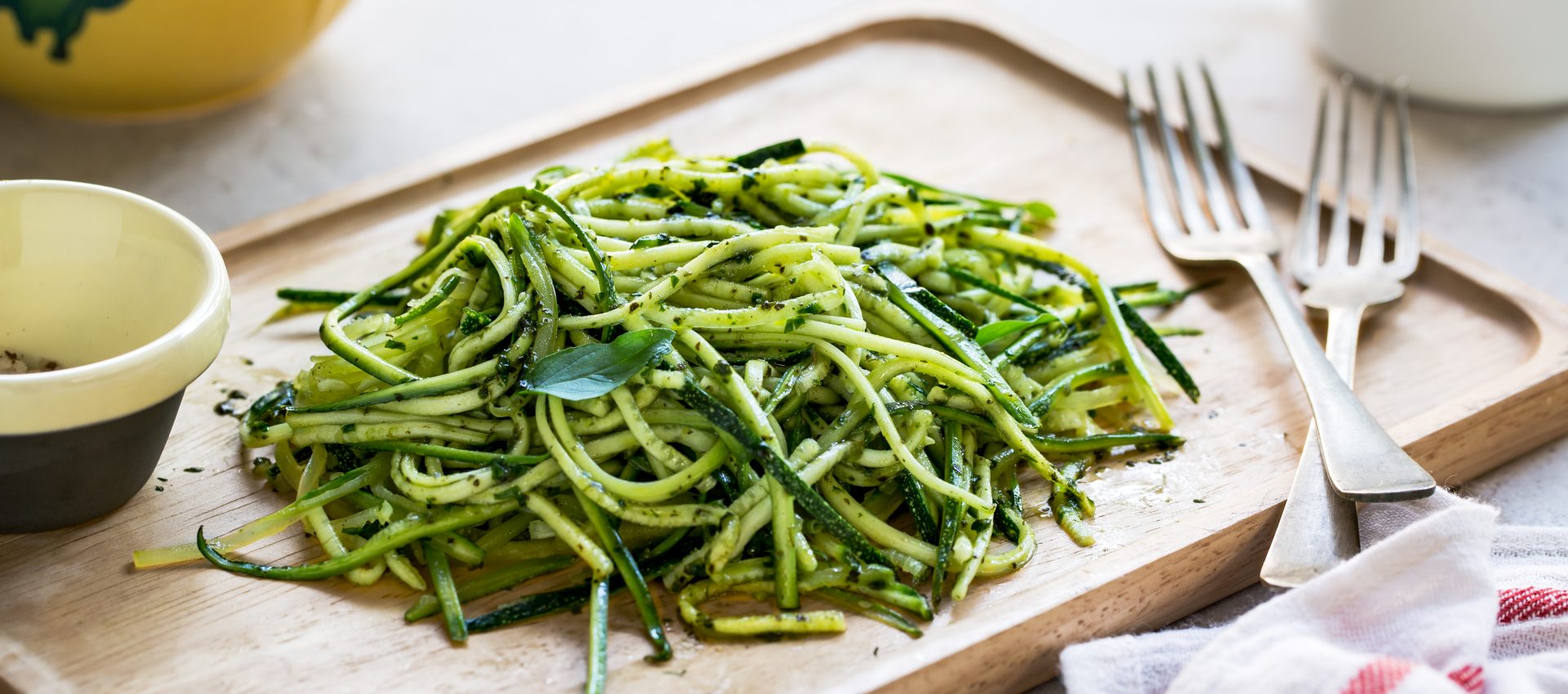 Faire des spaghettis avec un économe et les courgettes