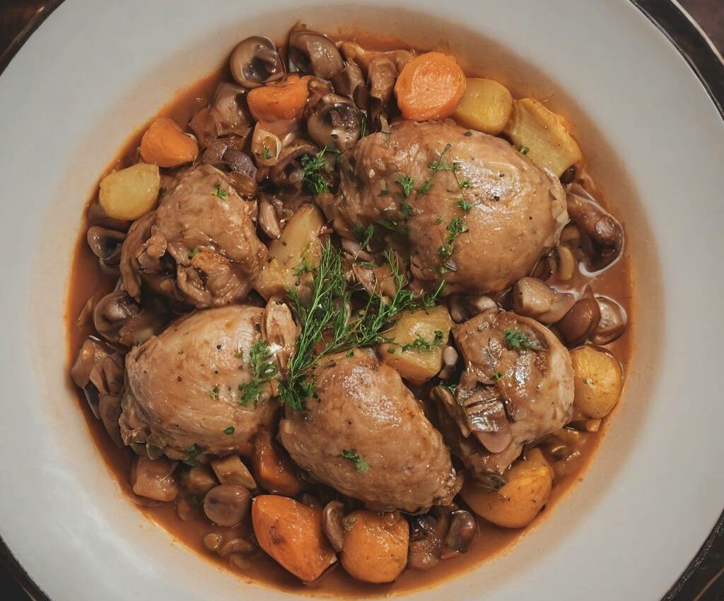 Un délicieux plat principal en un seul pot, qui combine des cuisses de poulet juteuses, des champignons savoureux et une sauce au curry onctueuse. Idéale pour les soirées chargées ou pour un confort culinaire facile.