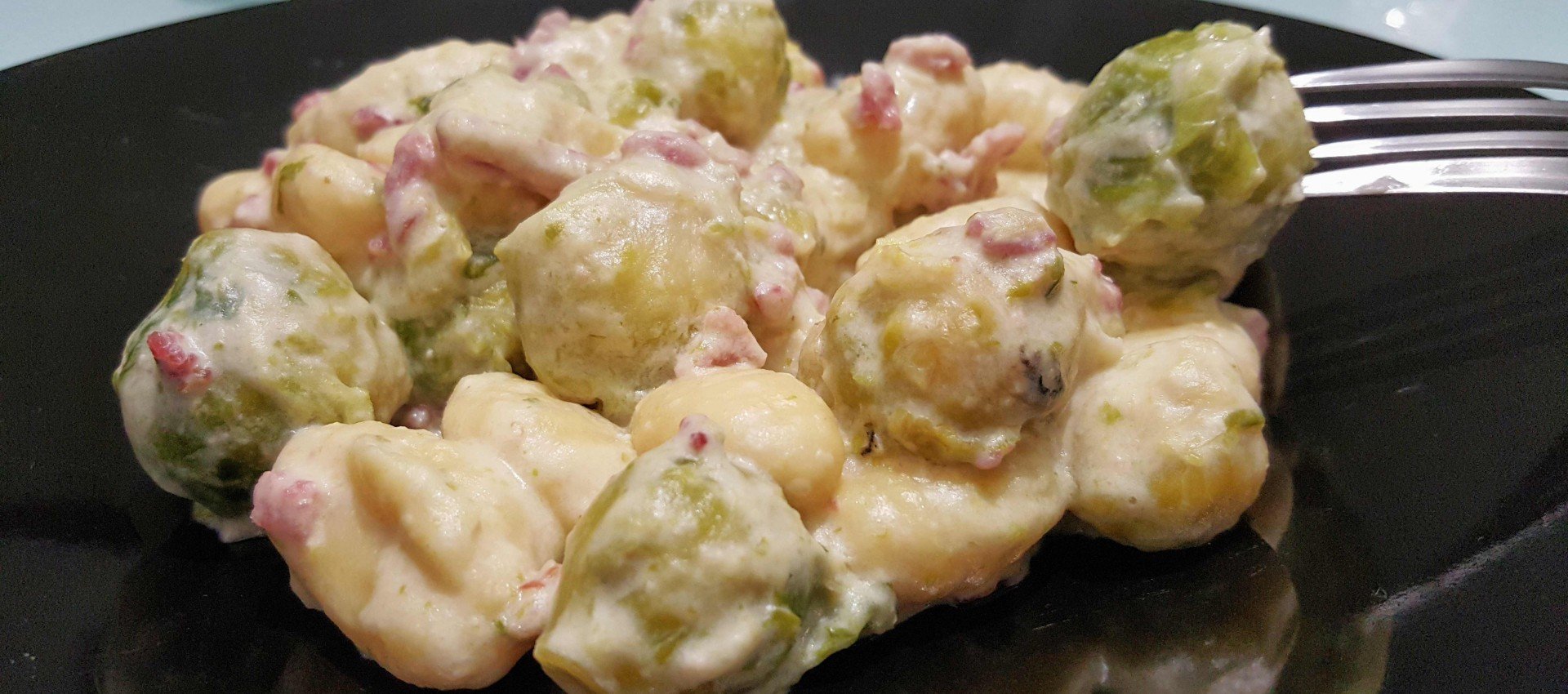 Recette Gnocchis crème de soja, lardon et choux de Bruxelles au robot multi-cuiseur Moulinex