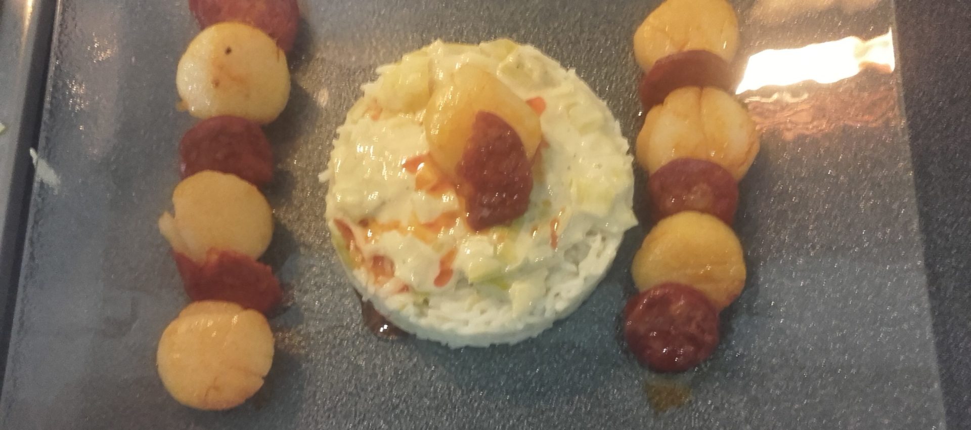 Recette Noix de St Jacques au chorizo sur son lit de poireaux à l'autocuiseur Moulinex