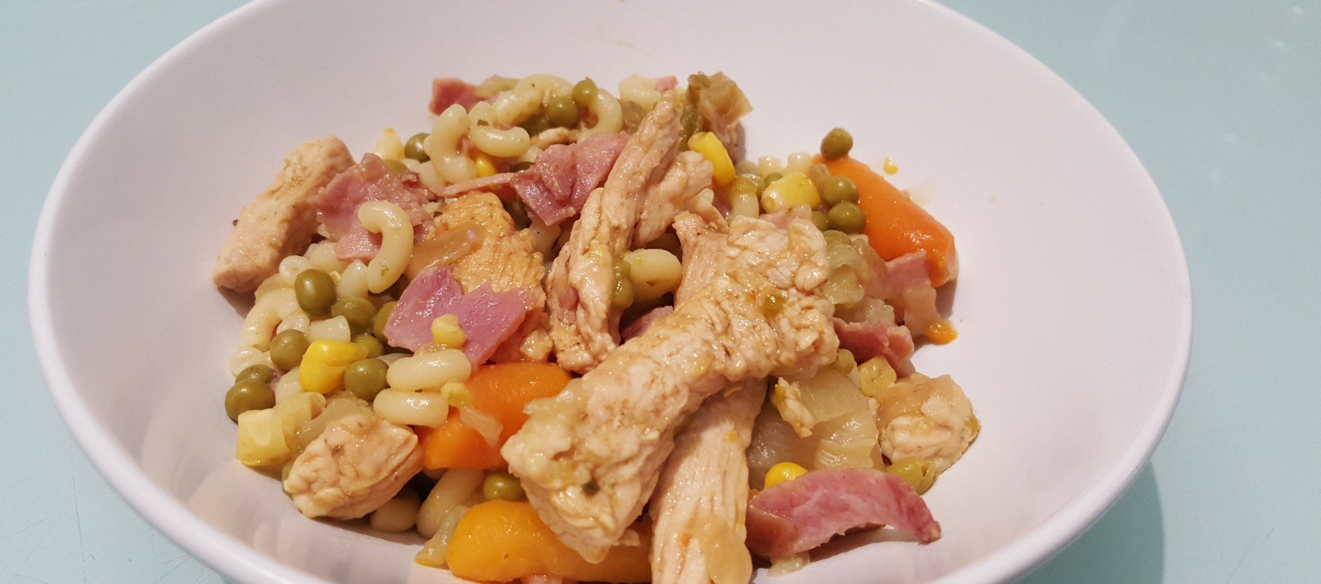 Noëmie Recette Pâtes à la dinde et petits légumes ww au robot multi-cuiseur cookéo Par noemie Recettes Light pour Cookeo Recettes de Dinde avec cookeo, Recettes de Pâtes pour cookeo octobre 20, 2015 0 0 Recette weight watchers 12 PP la part Rapide : plat cuit en 10 minutes 10 minutes 10 minutes Cuisinez pour 2 personnes Les ingrédients à cuisiner Pour préparer votre recette cookeo 50g de pâtes crues (pennes, farfalles, macaronis) à cuire selon les instructions de l'emballage 2 oignons émincés 100g de jambon cuit dégraissé, coupé en lanières 240g de filet de dinde, coupé en lanières 2 c.a.c d'huile d'olive 200g de petits pois et carottes surgelés 200ml de bouillon de légumes 2 c.a.s de maïs Sel, poivre, paprika (ou un mélange d'épices pour poulet) Les étapes Mettre le cookeo en mode dorer Faire dorer, pendant 2 min, les lanières de dinde dans l'huile d'olive et épicer selon les goûts Ajouter les oignons et les lanières de jambon et faire dorer encore 1 min Ajouter les petits pois/carottes et le bouillon de légumes Passer le cookeo en cuisson sous pression 3min A la fin de la cuisson, ajouter le maïs, les pâtes cuites et mélanger Envoyez-nous la photo de votre recette Fermer plein écran 00:00 5 Plein écran 0Avis Annuler la réponseVous devez être connecté pour publier un commentaire.
