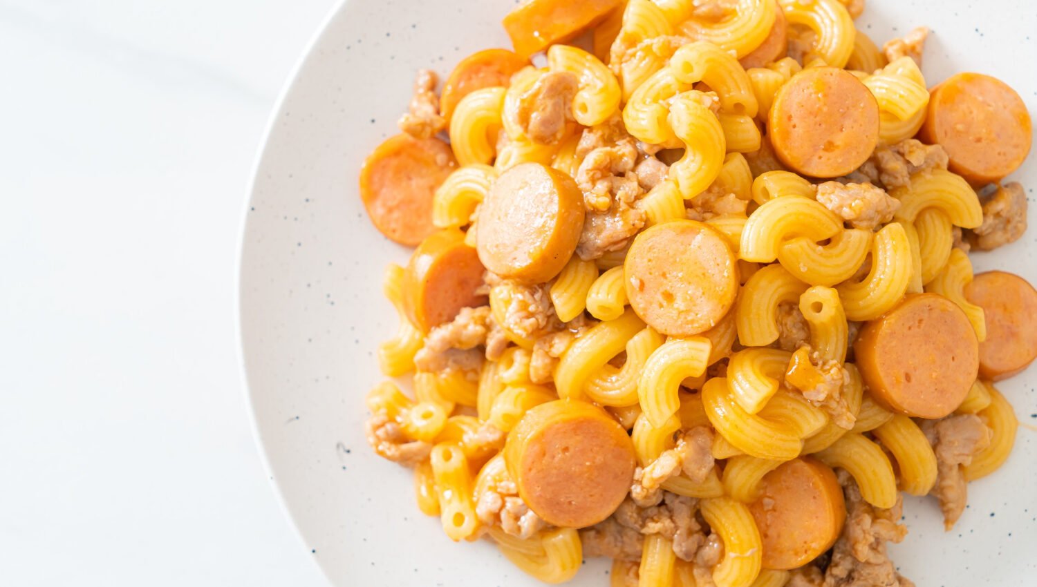 Pâtes au Porc Haché et Saucisse de Francfort à la Tomate