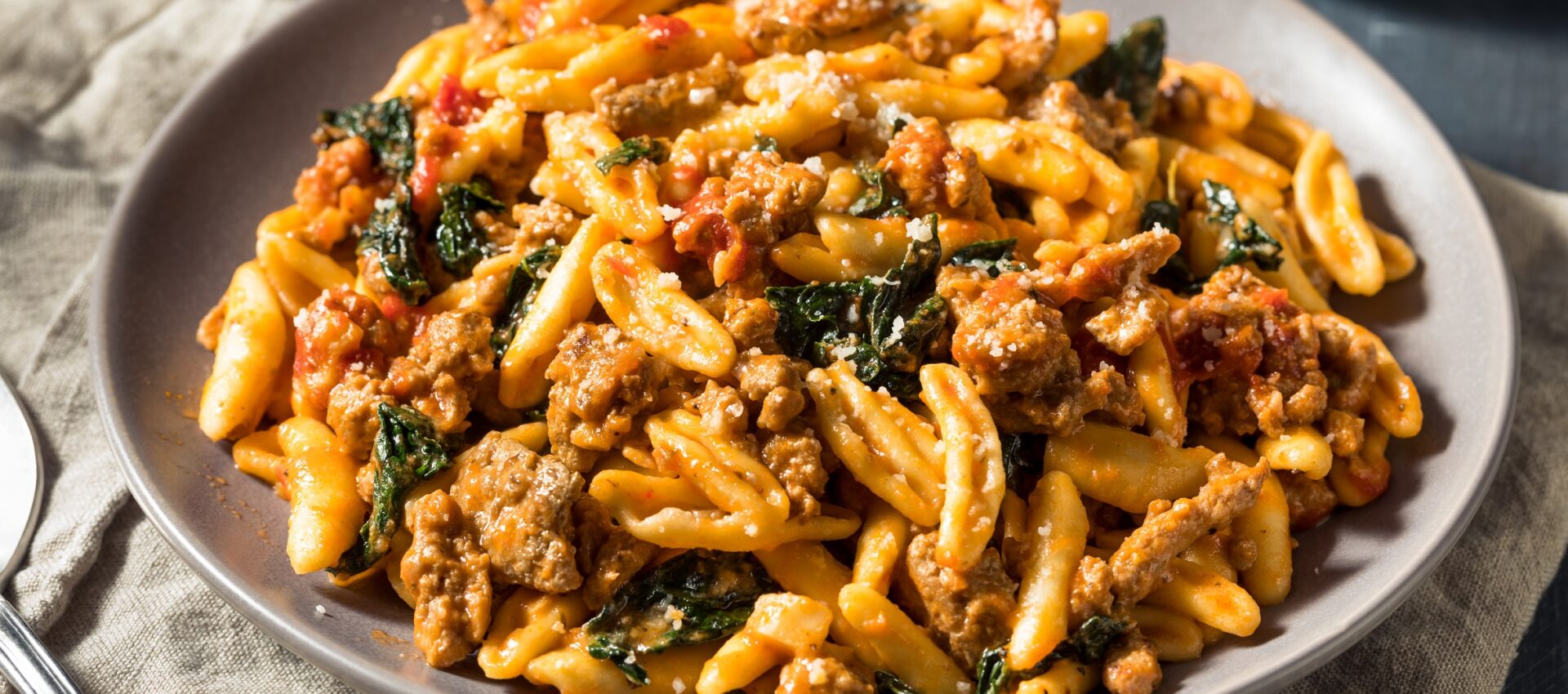 Cavatelli aux saucisses, tomate et épinards au Cookeo