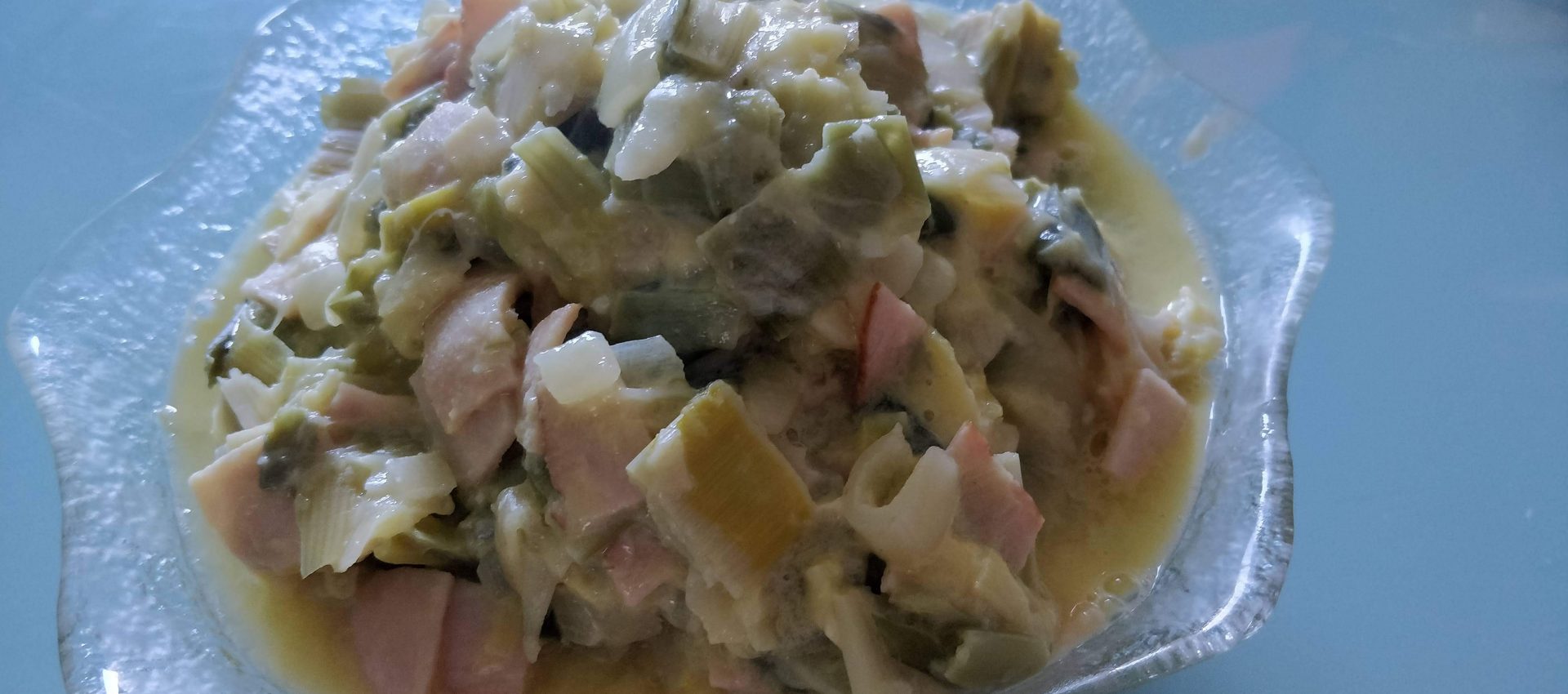 Poireaux au jambon, béchamel à la moutarde, light avec l’extra crisp à l'autocuiseur cookéo