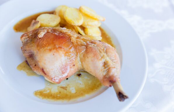 Un délicieux poulet rôti aux pommes de terre, avec une sauce au veau savoureuse et facile à préparer