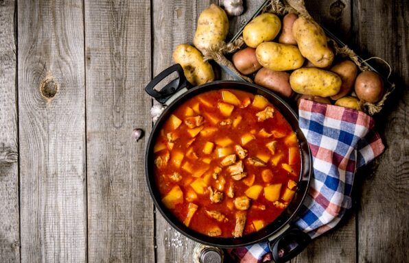 Savourez cette recette rapide de pommes de terre épicées aux poivrons rouges et porc, avec une cuisson sous pression pour un plat délicieux en un clin d'œil. Le piment d'Espelette et le paprika ajoutent une touche épicée irrésistible.