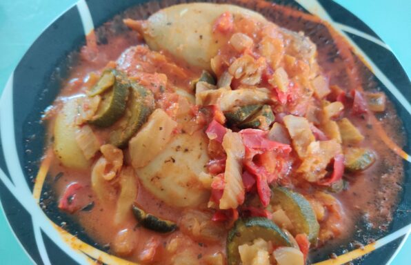 Une grande assiette de soleil ! Je n’ai pas fait de riz, avec les légumes et 2 encornets par personne il y avait largement assez.