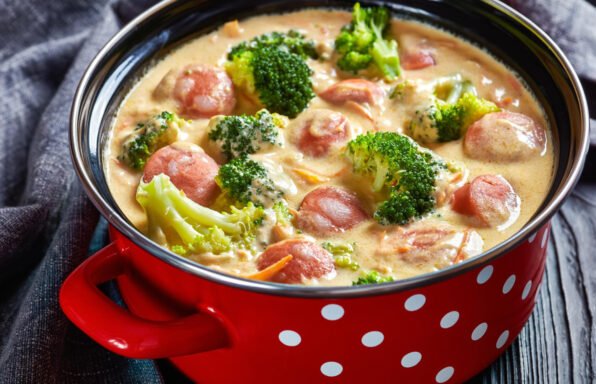 Soupe keto aux Brocolis, Cheddar et Saucisses