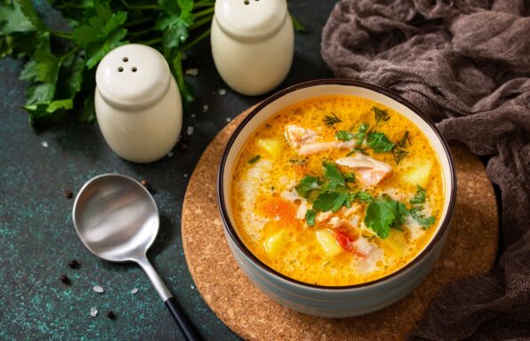 Une soupe finlandaise de saumon savoureuse et réconfortante, adaptée pour une préparation rapide et facile avec le Cookeo.
