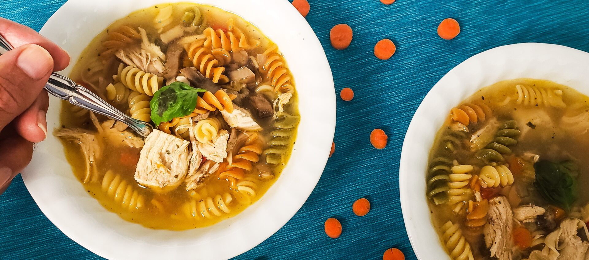 Recette Soupe de poulet et pâtes tricolores à l'autocuiseur Moulinex
