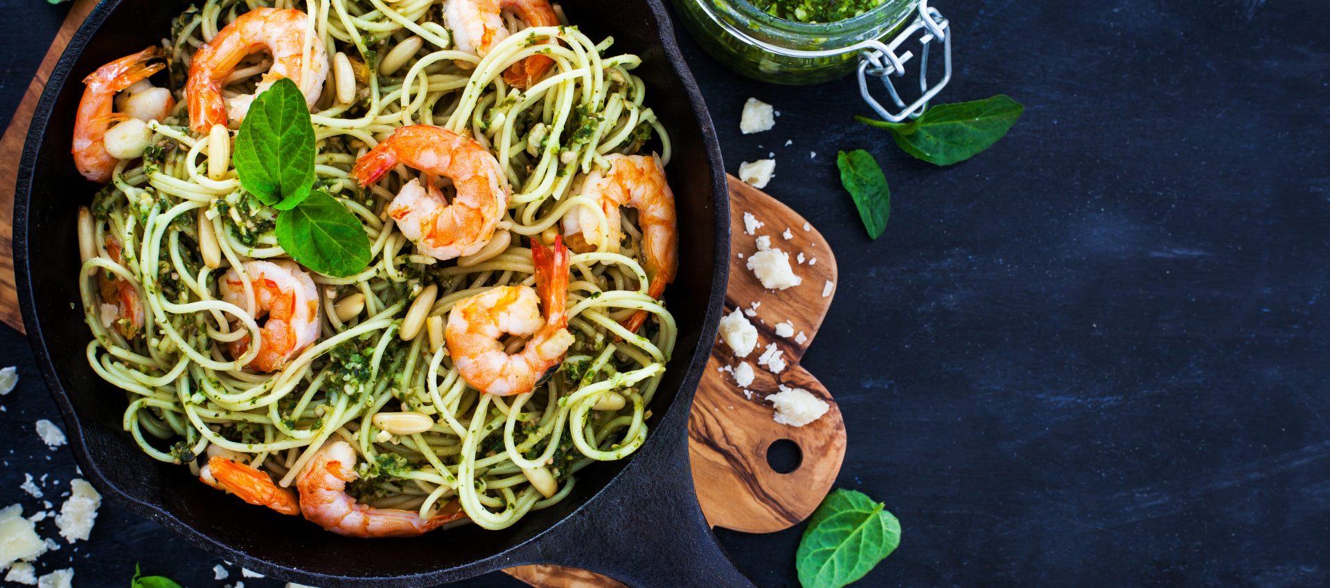 Recette Spaghetti aux crevettes sauce pesto au multicuiseur Moulinex